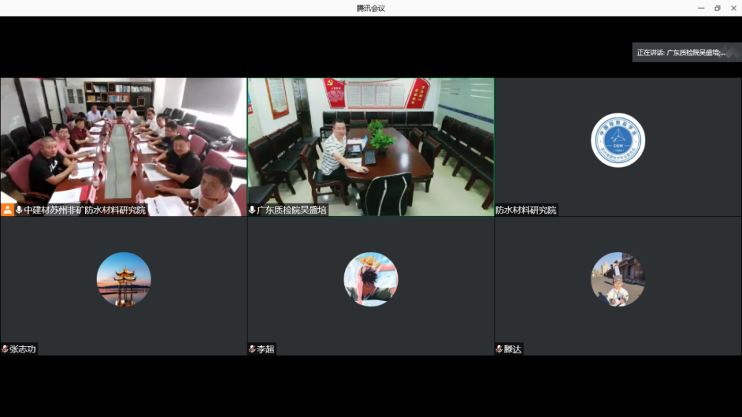 主編單位蘇州中材非金屬礦工業設計研究院有限公司、廣東合勝實業股份有限公司,參會單位江蘇凱倫建材股份有限公司、菏澤市魯班新型建材有限公司、重慶斯格爾實業有限公司、江西萬合防水科技有限公司、四川省威盾匠心建設有限公司、常州市盛宇防水材料科技有限公司、安徽東方佳信建材科技有限公司、江蘇宏源中孚防水材料有限公司,共10家單位15名代表出席線下會議;廣東產品質量監督檢驗研究院、宏源防水科技集團有限公司、三棵樹涂料股份有限公司、遼寧九鼎宏泰防水科技有限公司,共4家單位4名代表參與線上視頻會議。